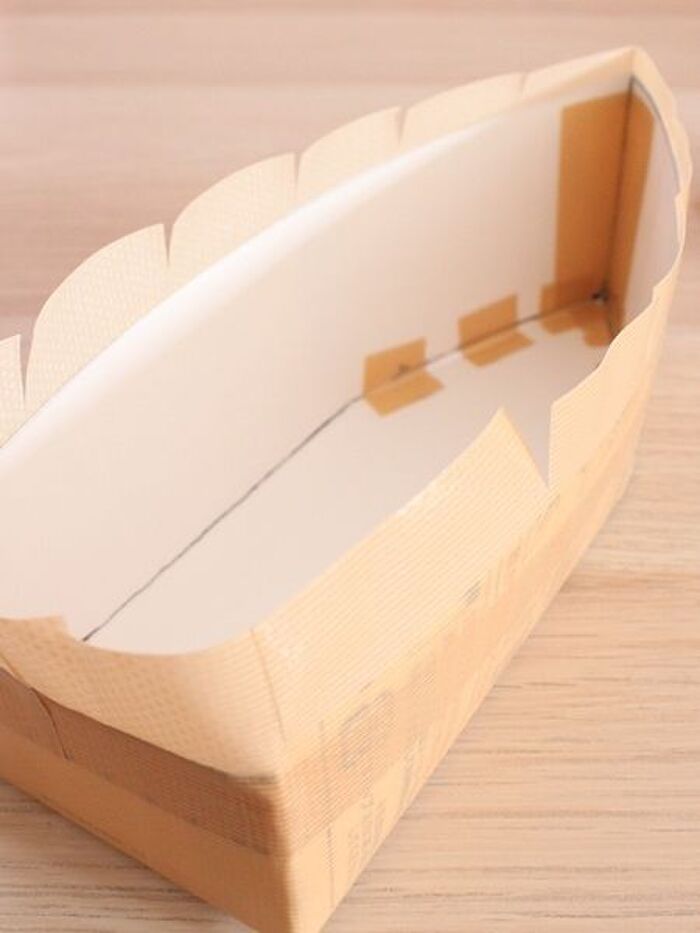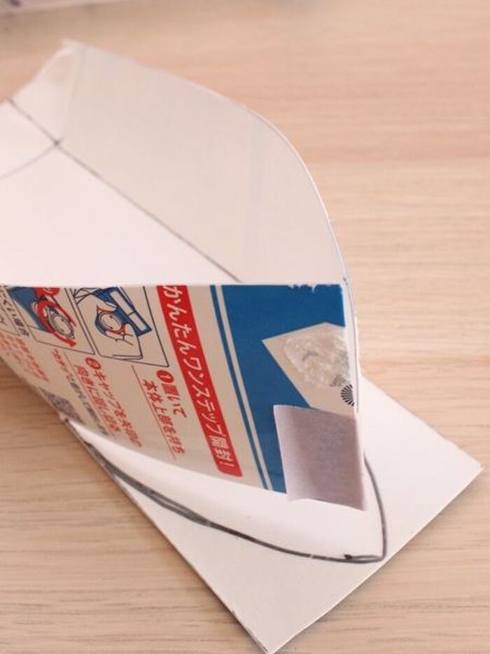 余っている牛乳パックを3cm幅で切り取って、ボートの高さに合わせてコの字に曲げます。