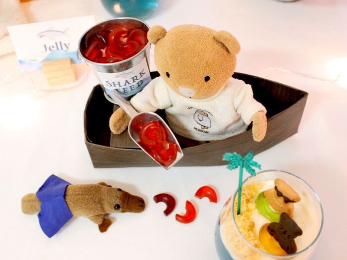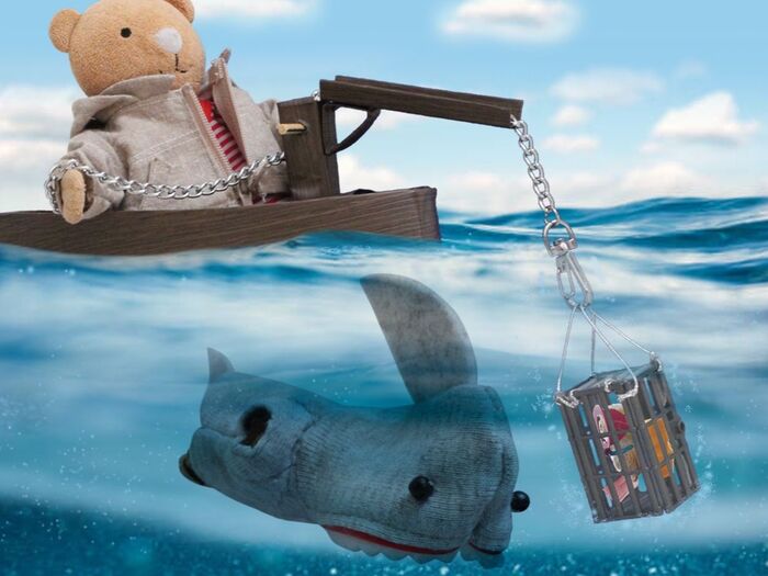 作り方のあとに、ぬいぐるみがシャークアドベンチャーに挑戦します !