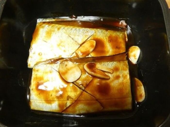 加熱前にタチウオにタレをしっかり絡めると、美味しい中華煮になります。