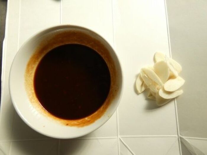 にんにくは薄切りにし、★印の調味料は混ぜ合わせておきます。