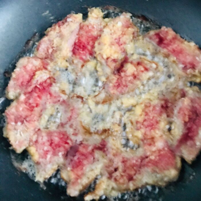 牛カツのお店ではソースにカレー味、抹茶塩、ソースの3種類添えてくれます。
