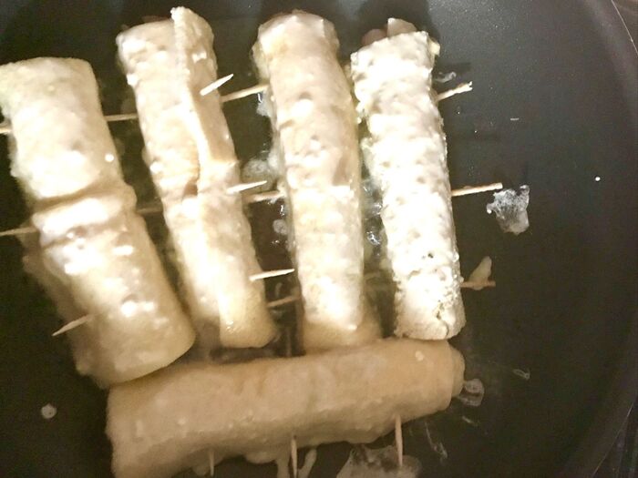 油をよく切り、爪楊枝を外します。
