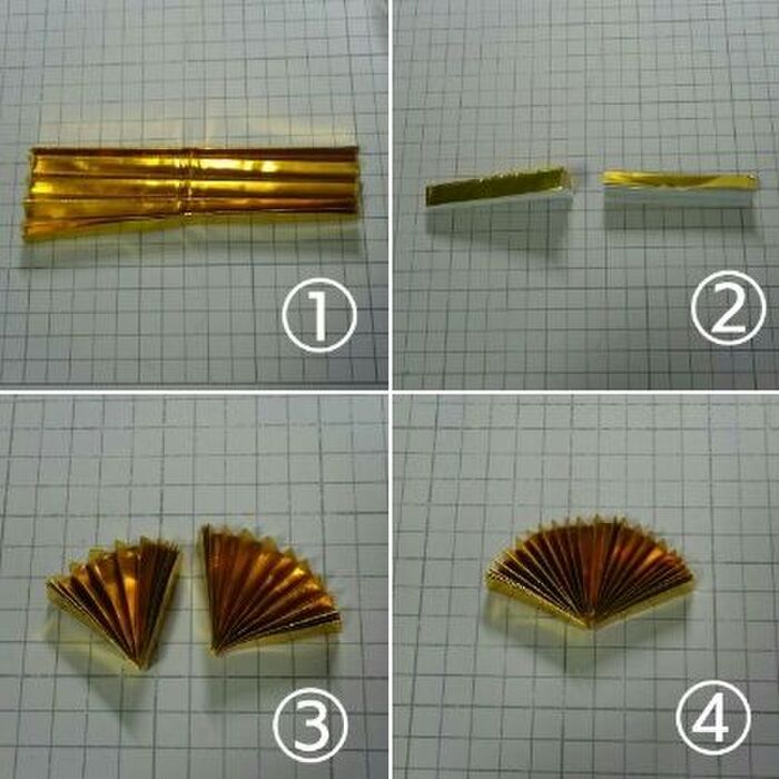 ①金の折り紙をジャバラ状におります。幅1㎝以内で☆