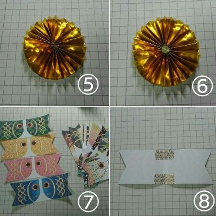 ⑤扇状のものを丸くなるよう広げて貼り付けます。