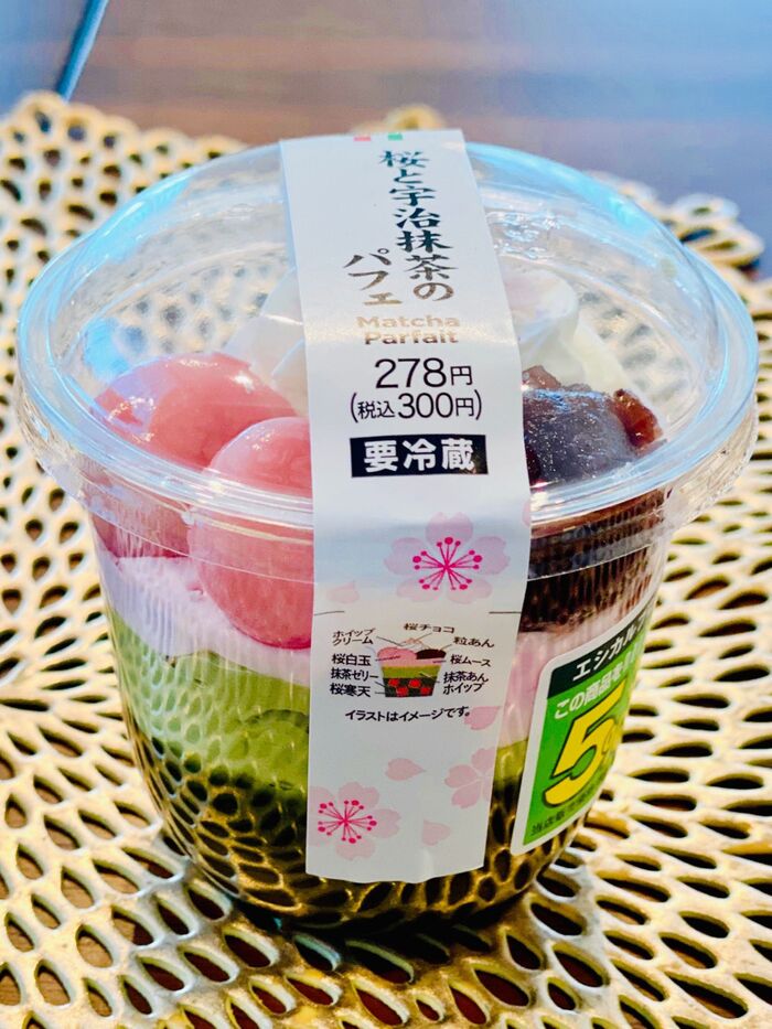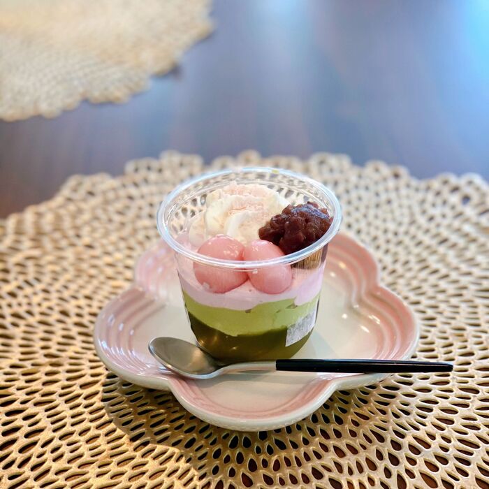 下から、抹茶ゼリー、抹茶クリーム、クリーム。