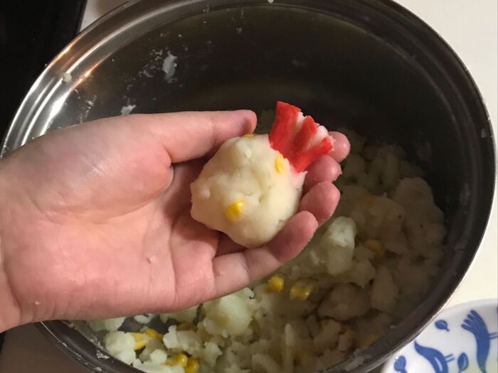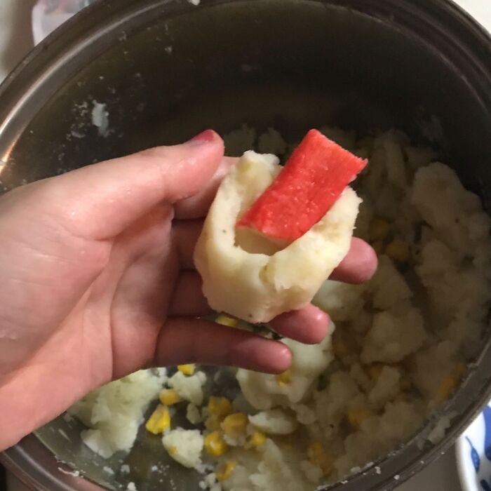 ①じゃがいもはゆで、マッシュします。(レンチンでも構いません)