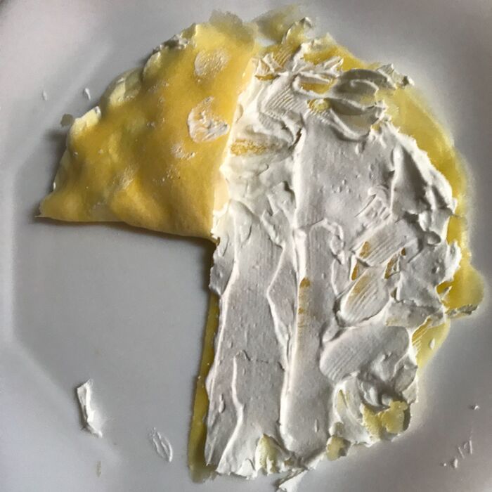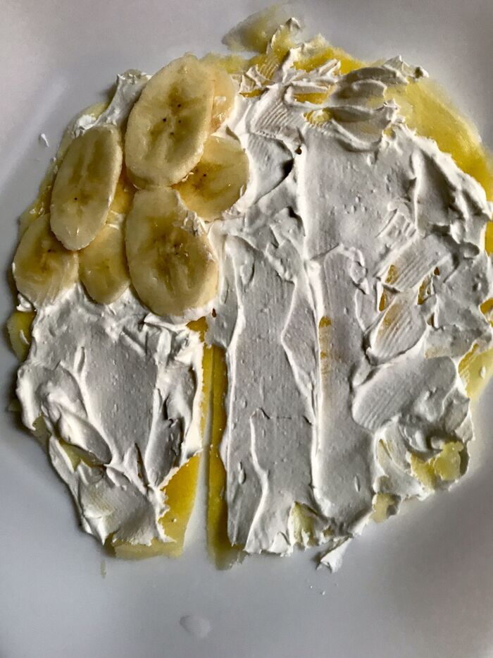 ⑤ホイップを塗り、バナナのスライスをのせます。