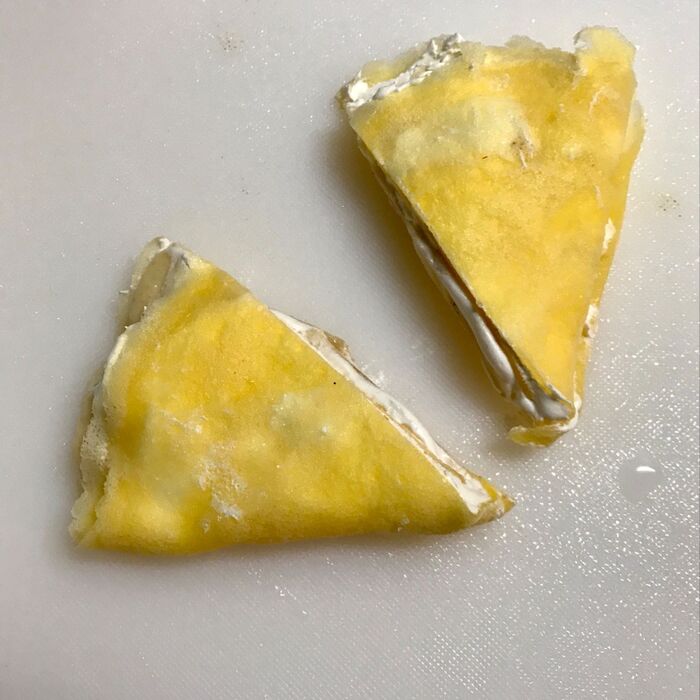 ⑨⑧を半分に切ります。重ねます。