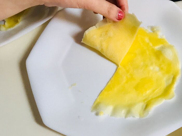 ②の生地を入れ薄くのばします。