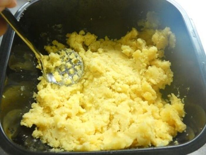 じゃが芋は1㎝の輪切りにします。耐熱容器に入れてふんわりラップをし、電子レンジ600wで5分加熱し熱いうちにつぶします。