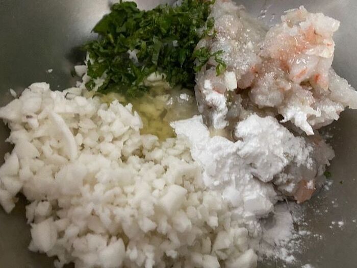 エビは包丁で粘りが出るまで叩き はんぺんは潰すように細かくして