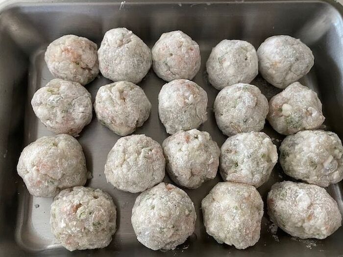 20等分に分け 丸いお団子状にして片栗粉を全体に
