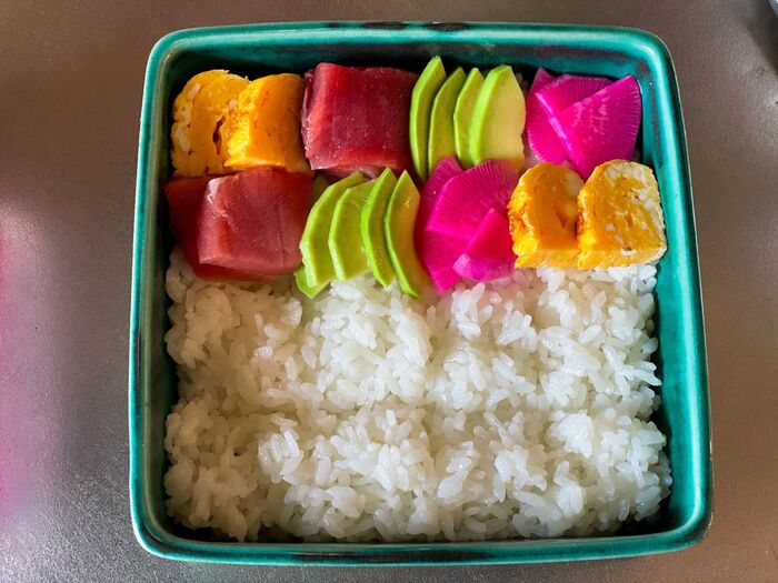 マグロじゃなくてもサーモンなど色が綺麗なお刺身でも!