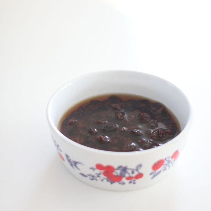 100gのレーズンをお湯で洗って、軽く水分を飛ばします。