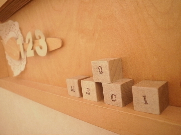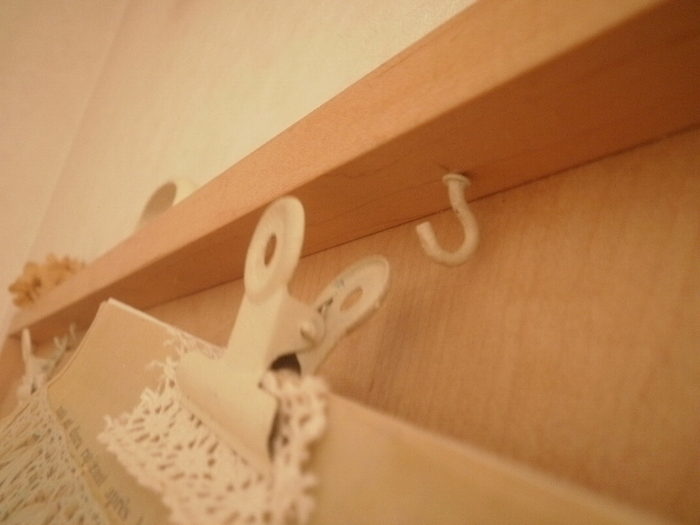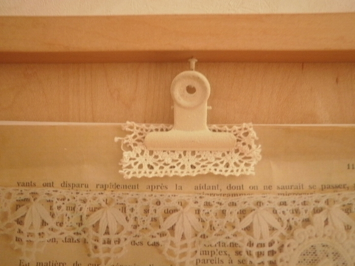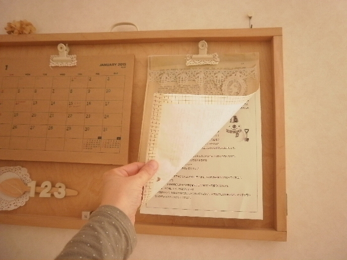ちょっとしたものをプリント類と枠の中に一緒に飾ると