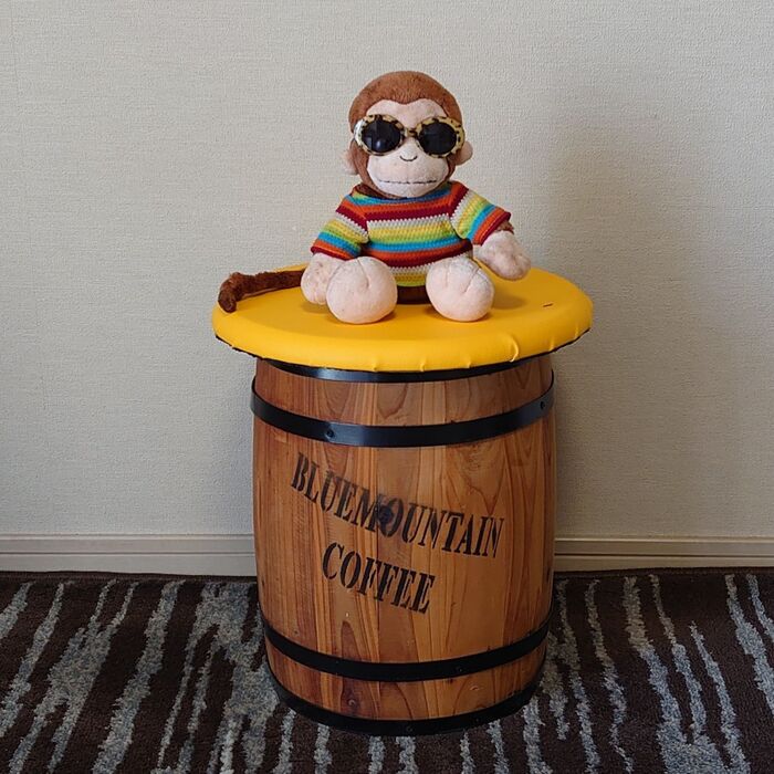 ★例えば、小さいお子さんがいるなら天板と樽に蝶番を取り付けて、開閉しやすくしてオモチャの収納にしたりもおすすめです❢ この樽の場合だと、蓋がズレない様にするなら、オススメはマジックテープかな!