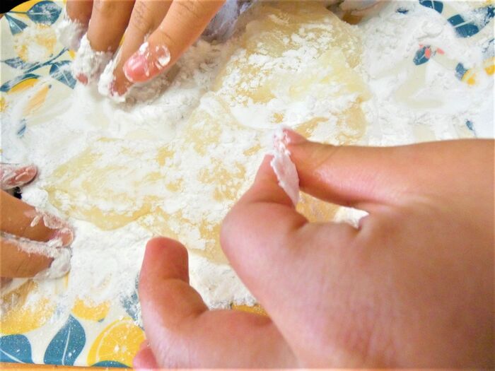 子供達も熱々のきびだんごに大興奮!!少し冷ましてから丸めましょう!!