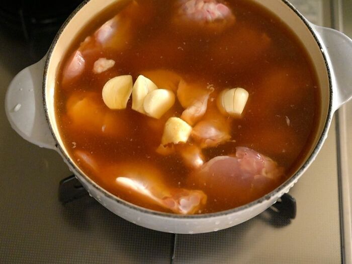 蓋を少しずらしてかぶせくつくつと15分煮る。