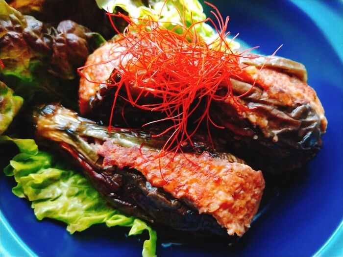 12.タレを強火にかけとろみがつくまで煮込みなすにかけて完成