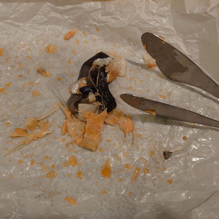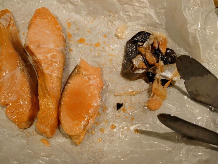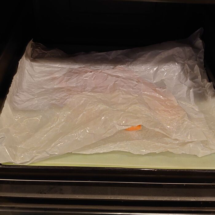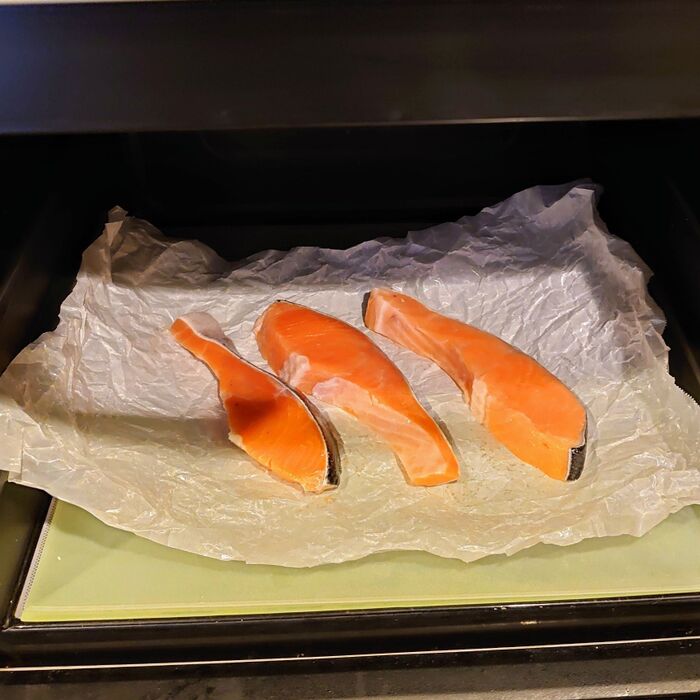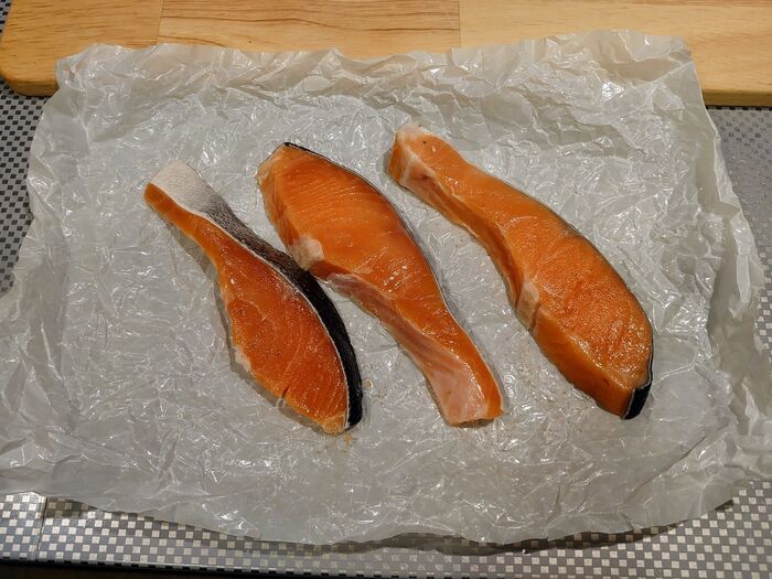 くしゃくしゃシートの上に鮭を置いたら
