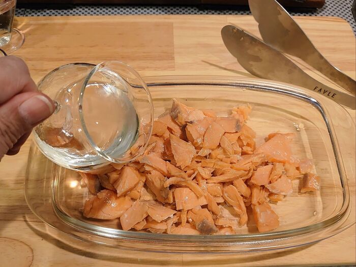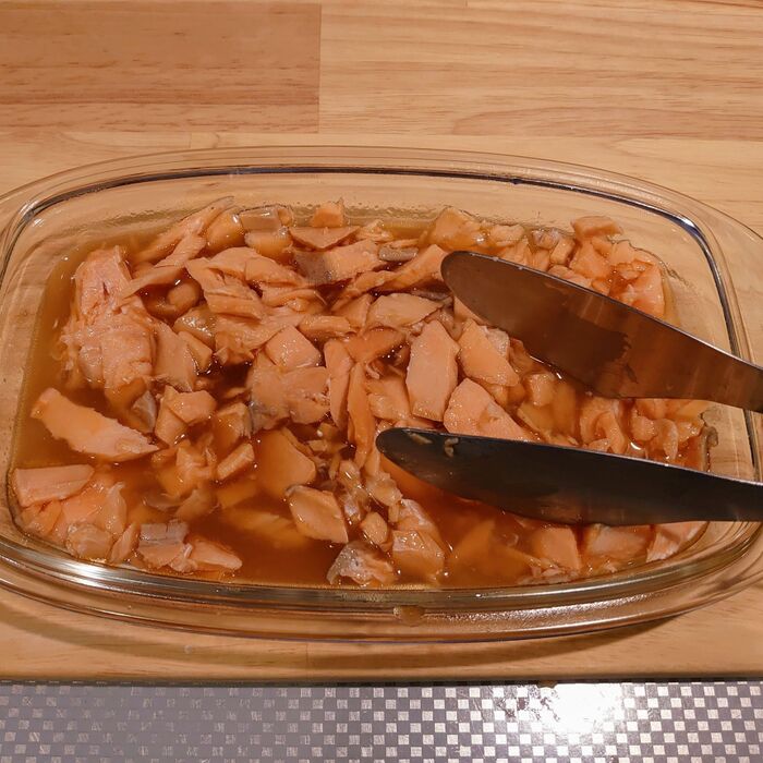 鮭の大きさにもよりますが、最初のレンチンで熱を通し過ぎると、味が染み込まないので要注意です。