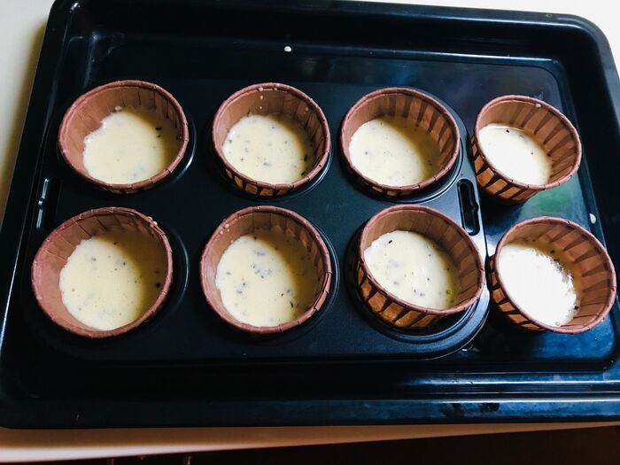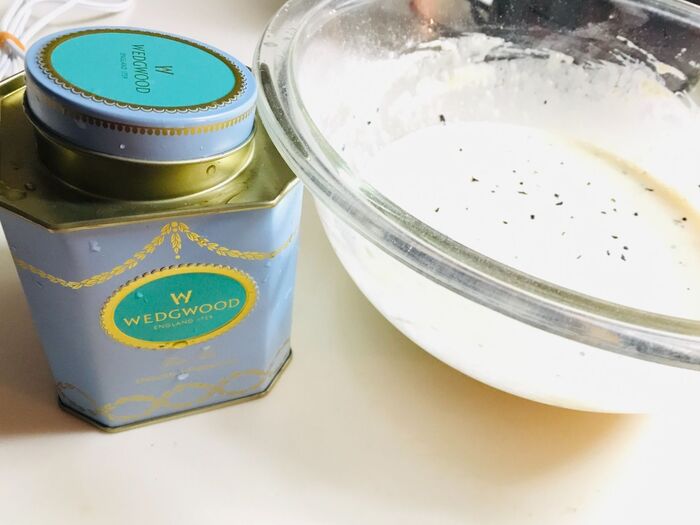 ベーキングパウダー、茶葉を順に入れ混ぜます。