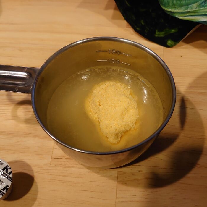鮭フレーク.バター.ほうれん草.牛乳.粉チーズ.溶いたコーンスープ