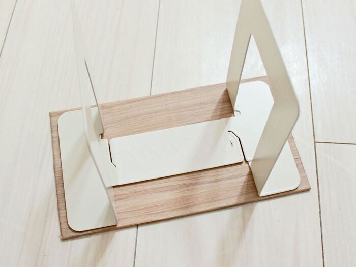 ※マスキングテープを貼ったのは、両面テープの粘着がブックスタンドに残らないようにするため。