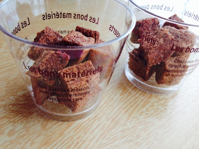 自作のチョコラスクを友達にちょっぴりお裾分けです。カップに入れると、そのまま袋に入れるよりも美味しそうに見える気がします。食べる時も食べやすいです。
