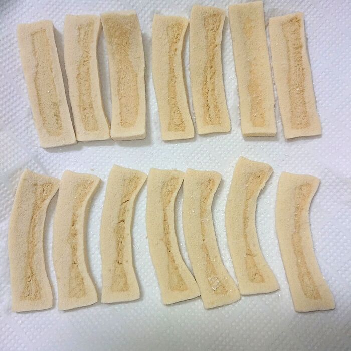 どんな形の高野豆腐でも、薄く切ったら大丈夫です。