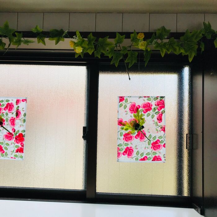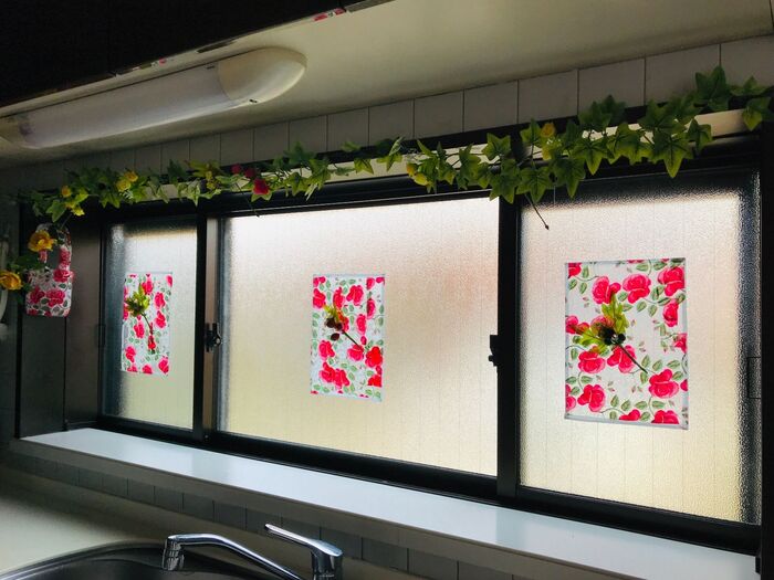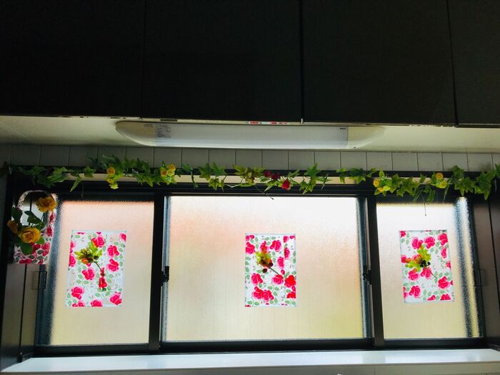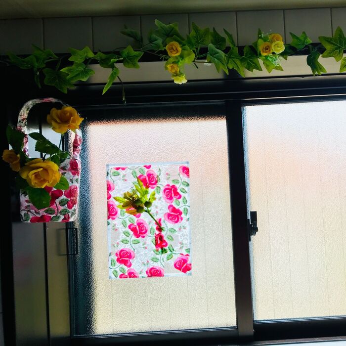 ツタや造花、ペットボトルで作った花瓶も飾ります。