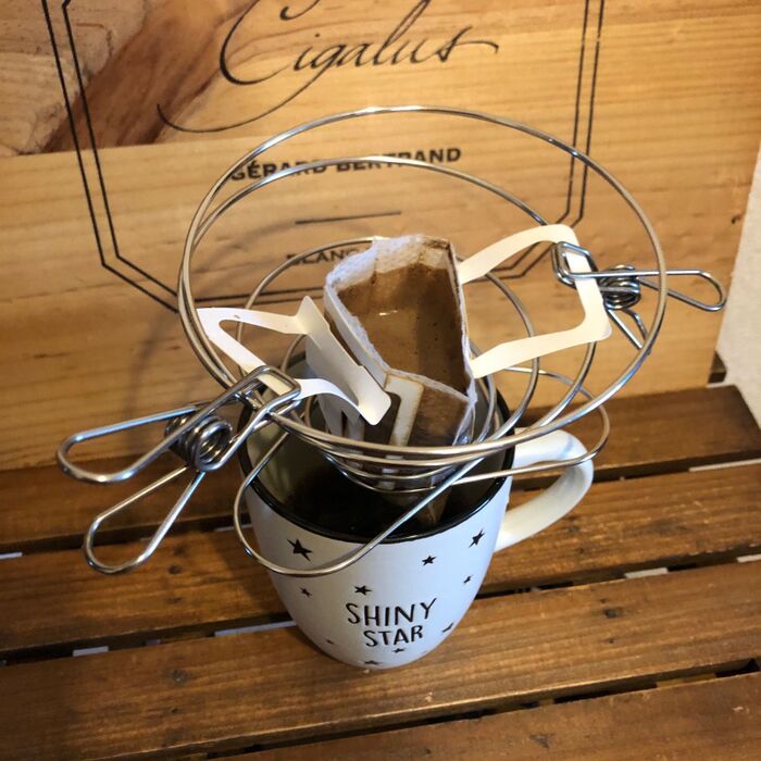 ドリッパーが、ワイヤーなので、コーヒーフィルターの引っかけを、洗濯バサミでとめることが可能なんです。
