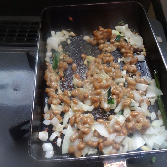納豆を炒める時、焦げやすいので火加減に十分注意してください。