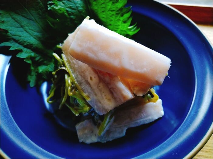 1.れんこんは皮をむき横幅2~3等分に切り、縦に置いて5㎜幅ほどに切る。