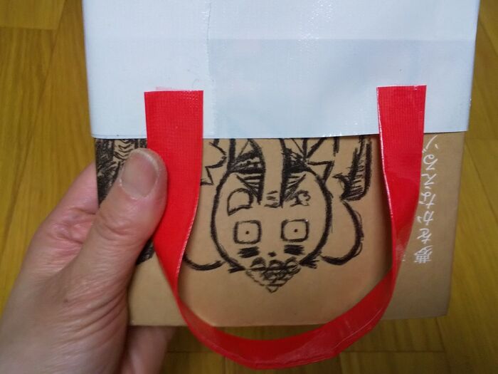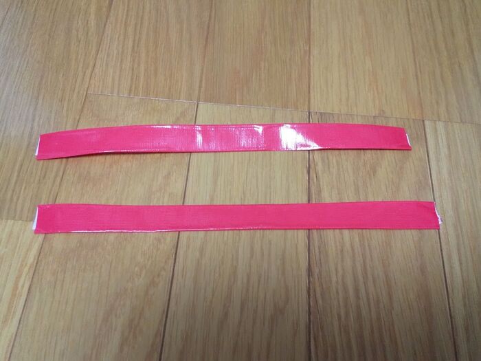 ガムテープを適当な長さに2本切って、三つ折りにして持ち手を作ります。