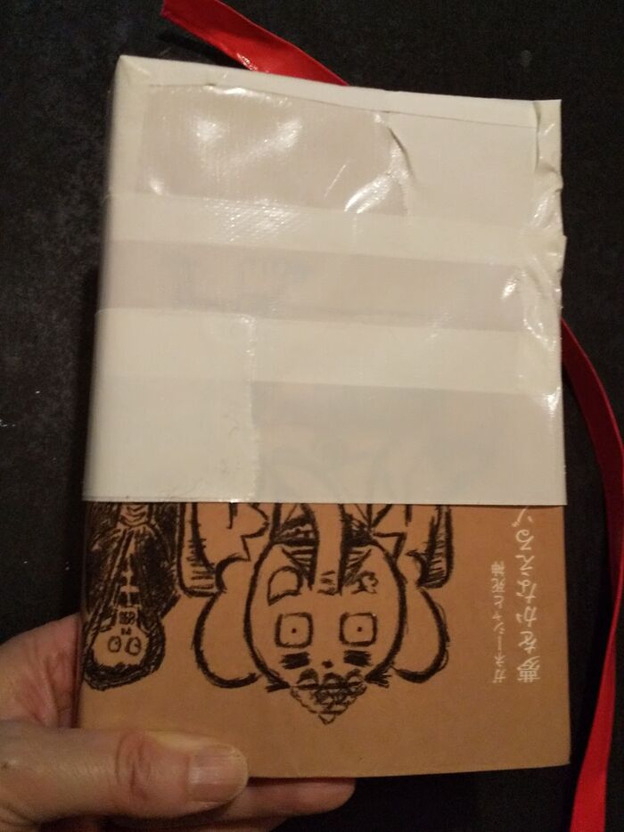 型になる箱など(今回は本を型にしました)に、ガムテープを、粘着面が外側になるように巻き、バッグの底も着けます。