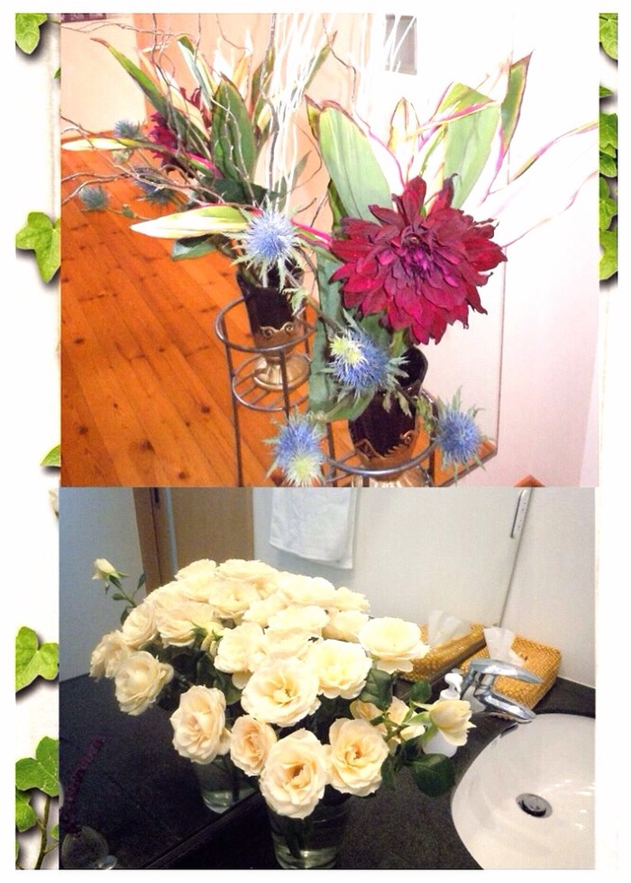 意外と洗面所や廊下の鏡の前に飾ると花も増量してみえるし、お客様にも好評です。