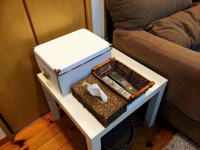 リモコン。ティシュはソファ脇にコーナーを作って。
