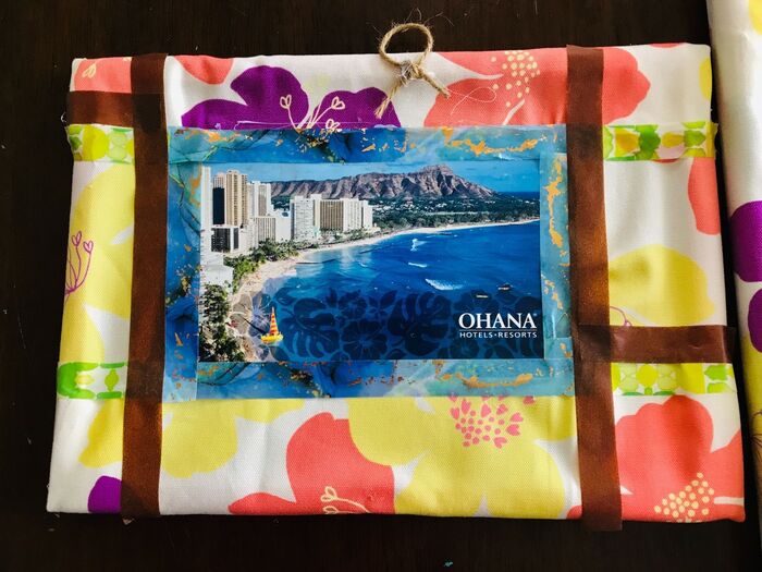 裏側のあいたスペースに絵葉書を貼り、マステで留めていきます。