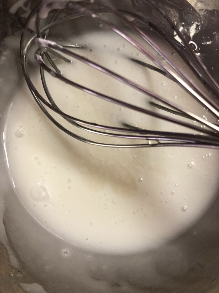 粉糖に卵白を少しずつ入れ泡立て器で混ぜます