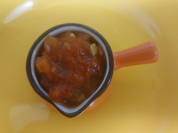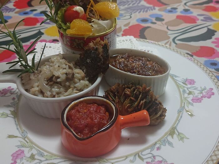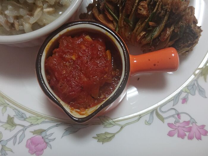 オレガノを効かせたトマトフォンデユーで覆いオーブンで焼き上げた。