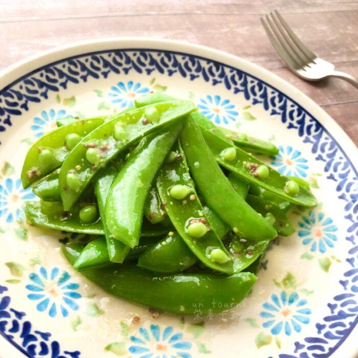 あら熱が取れたスナップエンドウに、☆を混ぜ合わせれば完成‼︎