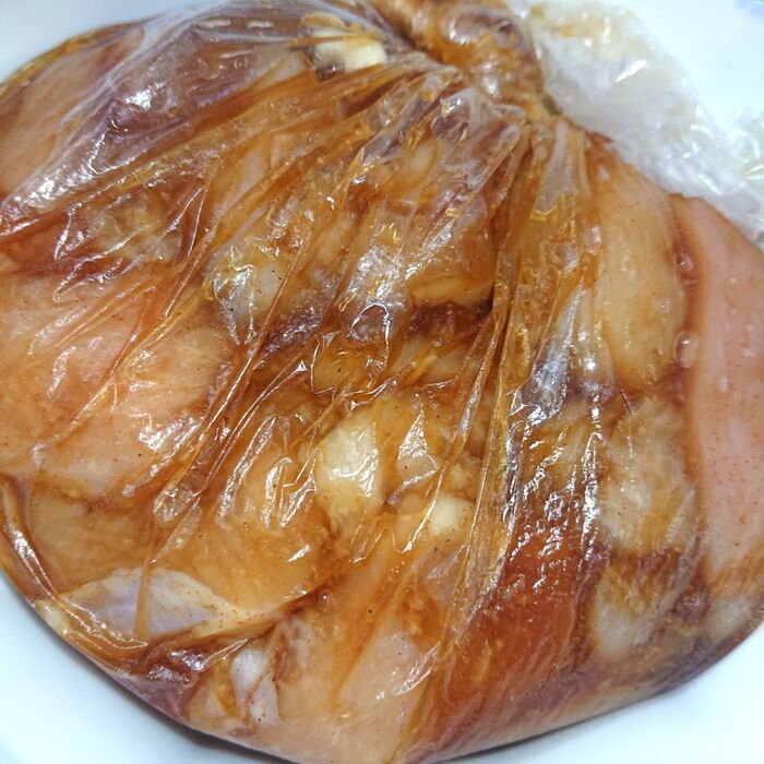 ポリ袋に鶏胸肉と★を入れて、にんにくはすりおろして入れる(にんにくチューブ2cmでもいいです)
