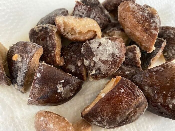 少量の揚げオイルでひっくり返しながら全体を揚げていきキッチンペーパの上にのせオイルを切る