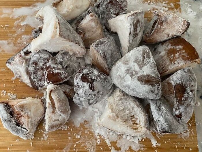 ★片栗粉をまぶしてあげることで味が絡みやすく冷めてもおいしい一品になります