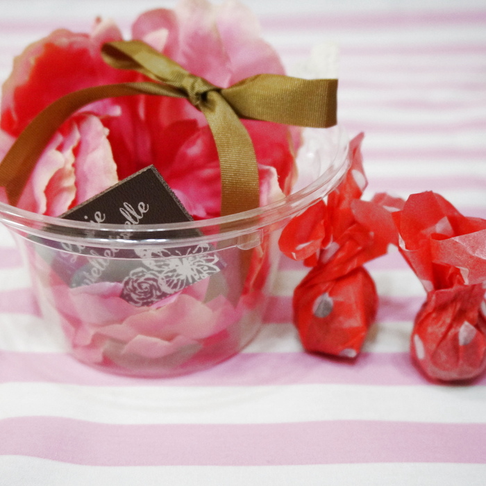 トリュフや大人味の洋酒入りチョコをワックスペーパーでクルクルっとねじって入れています。