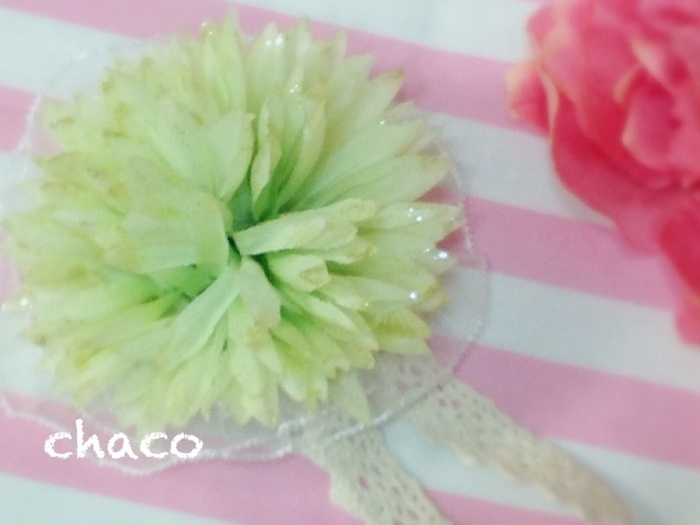 外側にリボンも考えましたが、中の髪飾りを主役にしたいので控えめにしてあります。