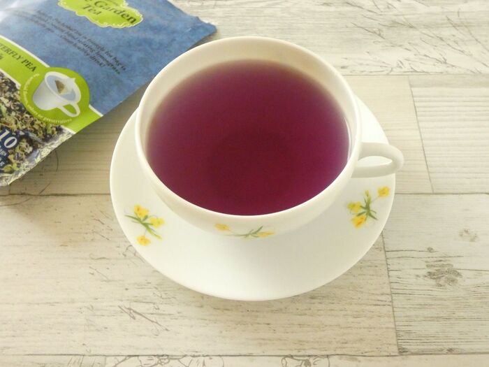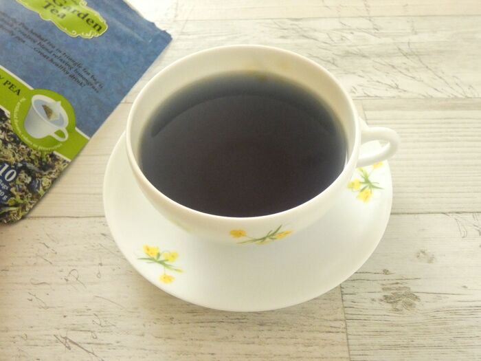 テトラ型ティーバッグで、熱湯を入れると色鮮やかな青色に。このまま飲むのはもちろん、蜂蜜などを入れてもOK。