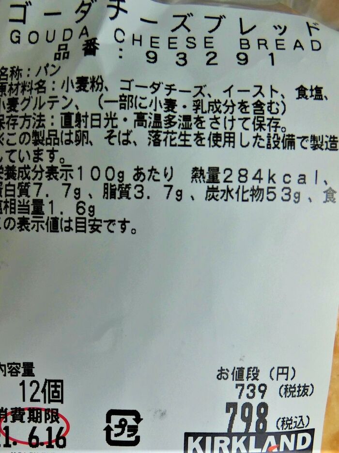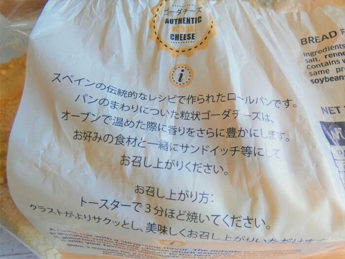 原材料名:小麦粉、ゴーダチーズ、イースト、食塩、小麦グルテン(一部に小麦・乳成分を含む)