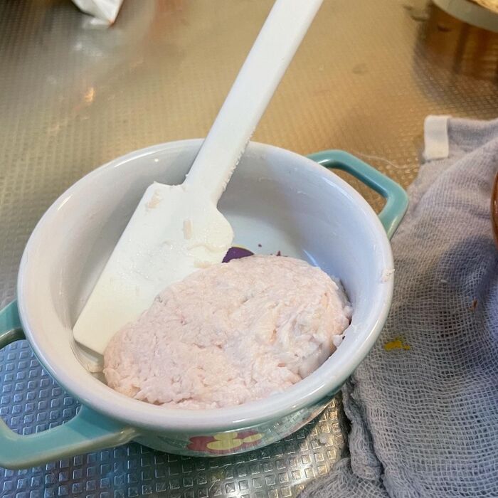 みるみるうちにペイスト状になっていくお肉に娘ちゃんもびっくりしていました。